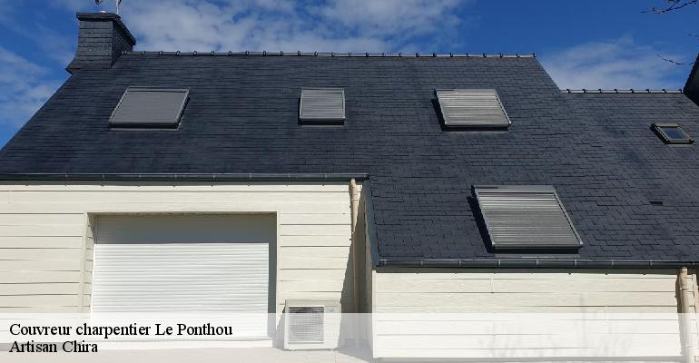 Notre société Artisan Chira à Le Ponthou répond à toute demande de travaux de toiture, de zinguerie et de charpente. Nous pouvons intervenir pour des travaux ponctuels ou dans le cadre d’un contrat sur une année ou à plus long terme. Les travaux d’entretien doivent être faits de manière régulière pour maintenir le bon état du toit. Nos couvreurs charpentiers interviennent en urgence pour des infiltrations d’eau ou pour le bâchage de toit d’une maison victime d’intempéries. Nous sommes disponibles 24 h/24 et 7 j/7 pour des interventions d’urgence concernant votre couverture.